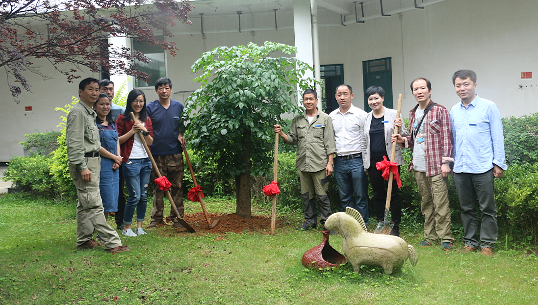 二、植幸福树:按照系校庆活动安排,下午14:00由返校系友原系主任罗克中、原党总支书记赵美川、教师杨鹏广及校企合作办学代表桂林福纸有限公司董事长银福忠及系领导、教研室主任共同在艺术工厂小花园种植了幸福树。枝繁叶茂的幸福树,充满活力朝气,象征着设计人,有强烈的的进取精神,寓意着艺设人在追求艺术道路上通文达艺,幸福长久。