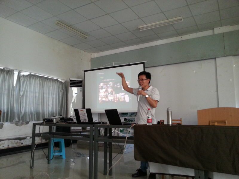 讲座过程中,牟标老师用幽默生动的措辞为我们讲了他留韩的生活经历,说起在韩国学习的情况,他说的第一句话就是语言学习很重要。由于他是去韩国读研究生的,因而对语言的要求比本科生要高很多。最常去的地方是工作室,晚上都要学习到凌晨3点多。“在国内读大学的时从没那么用功过,想想出个国,花的钱也不少,怎么都得认真地学点知识。”他笑道。相比国内的大学,韩国大学的硬件设备要好很多,学习氛围也是相当浓厚。