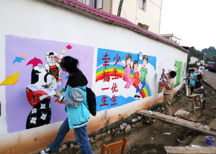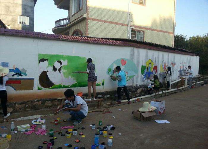 我院一向重视培养学生的社会实践能力,积极为地方的经济社会发展服务。近日,应桂林市荔浦县双江镇政府的邀请,我院艺术设计系部分师生到当地为计生办设计计生专题宣传墙。