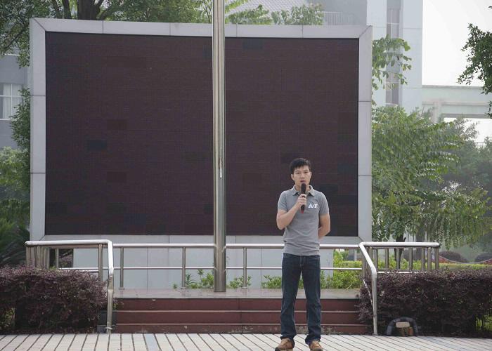 图二:艺术设计系党总支副书记在国旗下对同学们进行安全教育