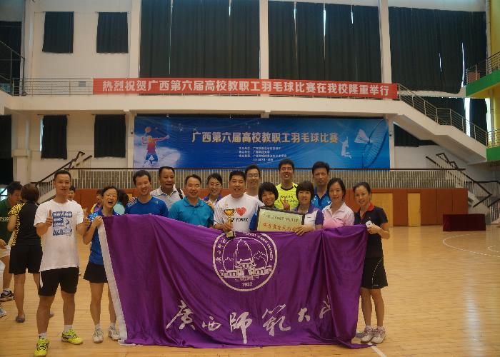 广西第六届高校教职工羽毛球比赛7月2日至5日在广西科技大学体育馆隆重举行,本次比赛共吸引了来自全区35所高校的近500名教职工参加,经过3天的激烈角逐,最终我院艺术设计系苏桂宏老师所代表的广西师范大学代表队取得了全区第五的佳绩。