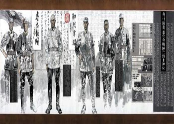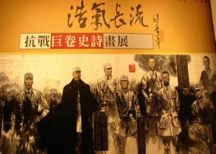 这是一次逆时间长河的回溯,不论多久的分岔,源头清澈在民族的记忆里。一卷流向,平行于历史,镜鉴着河山人心。描写中国人民全面抗战的全景式宏大叙事国画巨作《浩气长流》全画长达805米,画宽2米,按真人比例实录历史人物共838名,展现中国抗战时期史实,绘制相关政治、军事、文化、外交、中外、朝野各界历史人物1018位,介绍说明相关文字20多万字。集中国大陆美术、史学两界几十位画家、学者,以全民间的运作,耗时五年半,于2009年2月28日在中国描绘抗战时期,几百名母亲,为了生存,被迫离开故土,颠沛流离,坚韧护卫儿女的动人画面;卷一“山河岁月”, 描绘九一八事变起,民众历经南京大屠杀,逃离迁徙至大后方以及接受国际援助之情形;卷二“血肉长城”, 描绘抗战中大、小会战的惨烈情况以及阵亡将领群像。主题是保家卫国;卷三“精神堡垒”, 描绘抗战时期文化、艺术、教育和学术界人士;卷四“信义和平”, 描绘抗战时期历史事件,表现国共合作时期政治军事领导人物,以及抗战以降,中国鼎盛时期赢得非殖民化和主权回归胜利的外交精英;卷五“青天碧海”,描绘了我国台湾人民的英勇抗日历史场景;卷尾“愿景·祈祷”, 描绘20世纪东西方著名和平运动和非暴力主义代表人物,祈愿“维护和平,拒斥战争”的永恒理想。整个画卷以左文右图、树碑立传为主法,以多幅长卷、鸿篇巨制为拓本,序、弁、述、跋及说明、介绍、文献、标语、诗章、歌赋各类文字十二万余字,共耗费宣纸张,装裱总面积达18558平方尺,镌刻石制狮印168枚,重达4吨,可谓中国及世界美术史上的空前杰作。此次展出的《浩气长流》长卷印刷品是我院艺术设计系主任亲自联系此卷总策划王康先生所得。