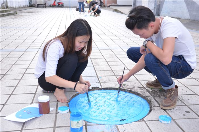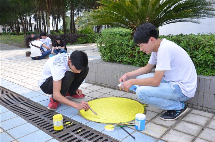 5月9日艺术设计系学生利用周末时间,用手中画笔在校园井盖上涂鸦“社会主义核心价值观”宣传画,这样的活动既美化了校园,也传播了“社会主义核心价值观。”