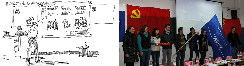 在深入贯彻学习党的十八大精神的形势下,近日艺术设计系顺利开展了富有专业特色的期末考评大会。系主任罗克中老师、党总支书记赵美川老师、主任助理贺雷老师、团总支书记王瑞老师和院团委组织部代表、院记者团和各系的团学代表参加了此次考评大会。