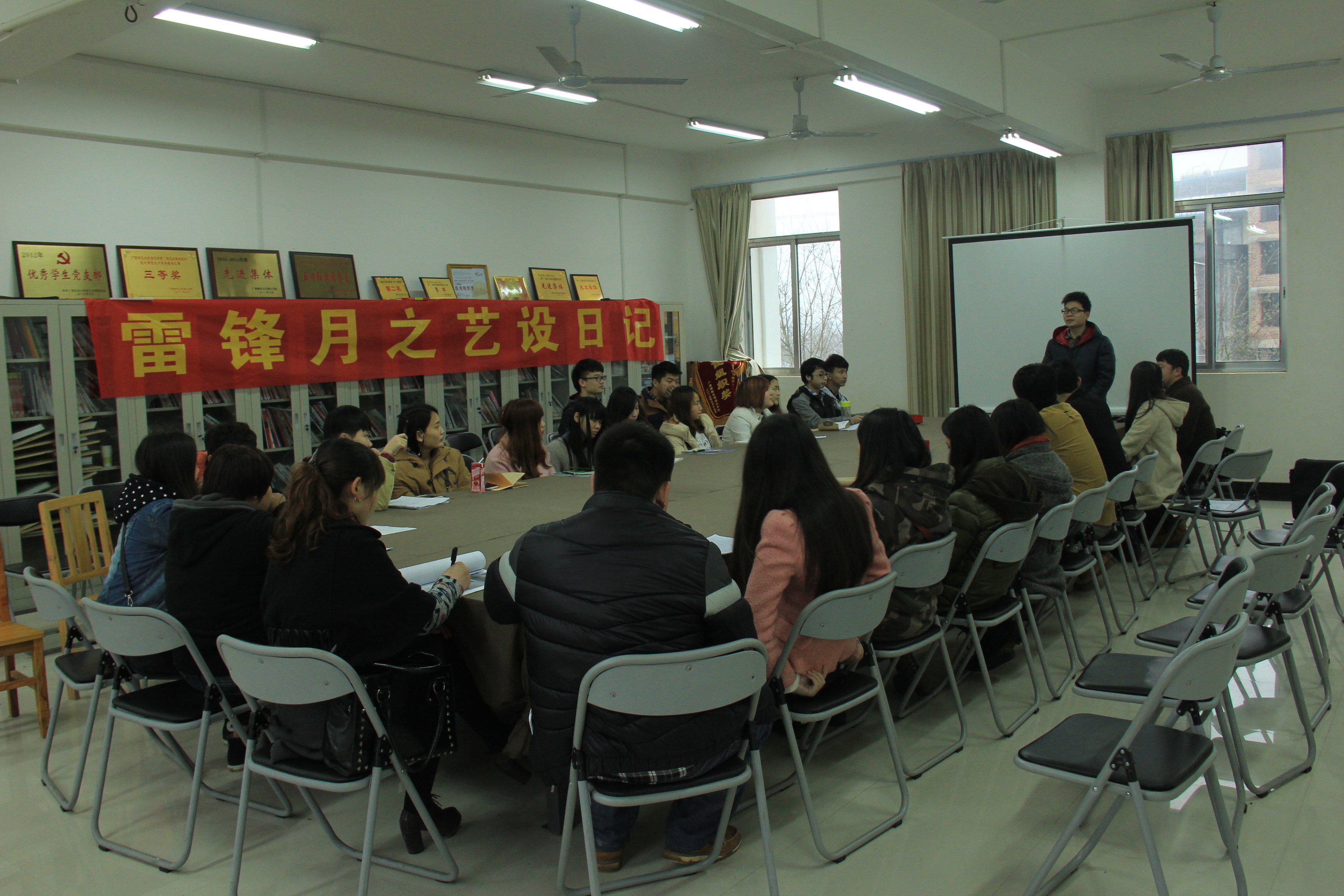 为弘扬雷锋精神,倡导社会文明新风,践行雷锋行动,通过开展具有教育特色的主题活动,促使我艺术设计系学生自觉主动地在生活、学习中时刻践行雷锋精神,营造学习雷锋的氛围,养成良好的学习、生活习惯,我系学生干部于2014年3月12日下午在艺术工厂213实验室开展了雷锋月活动之“观雷锋电影,述雷锋故事,学雷锋精神”活动,系党总支副书记贺雷老师和系团总支学生会书记王瑞老师参加了此次活动。