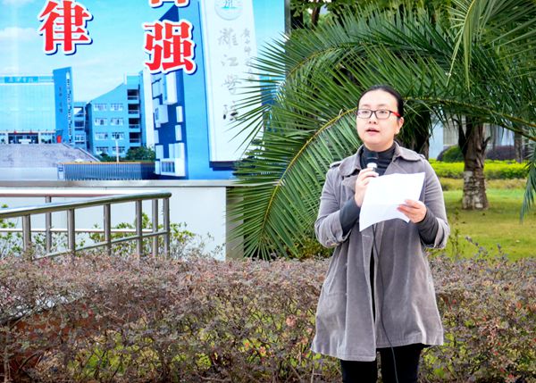 艺术设计系党总支书记张丽在升旗仪式上讲话。她高度评价了同学们能够自觉关注党的十九大召开,并将党的十九大精神要求和自身的实际结合起来进行思考和总结。同时,她勉励同学们要认清形势,既要看到祖国发展取得的伟大成就,又要对当前形势具有理性的认识,要求广大同学坚守正确的立场,自觉维护党的领导,切实维护国家的和谐、安全、稳定;鼓励同学们不忘初心,从身边的每一件小事做起,哪怕历经挫折,也要努力做到初心不改;号召同学们树立不移之志,如磐信念,自觉承担起对社会的责任,对民族的责任,为中华民族伟大复兴作出自己的努力。