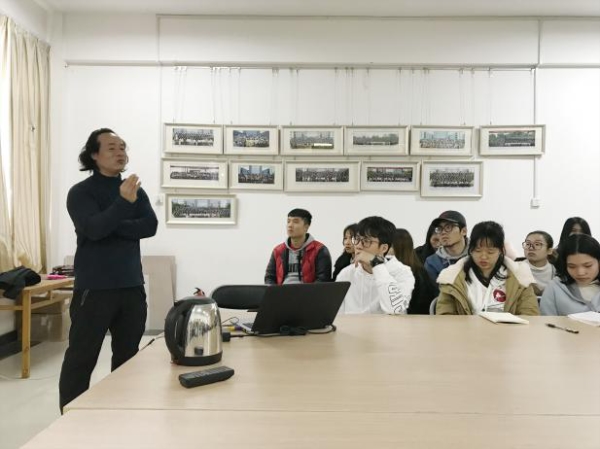 图:蒋志龙老师在给同学们讲授对书籍设计的感悟