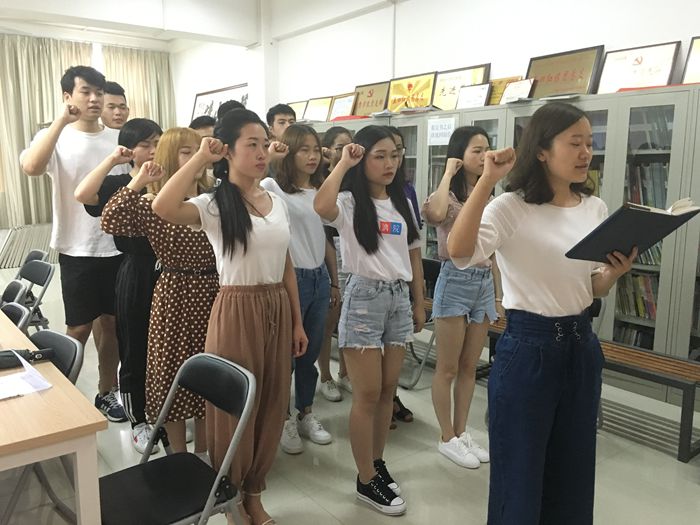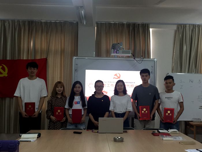 党课结束后,全体毕业生党员在学生党支部书记禹淼的带领下重温了入党誓词,党总支为毕业生党建信息员颁发了聘书。