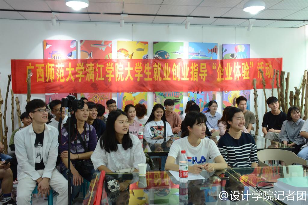 为了提高大学生的就业竞争意识以及创业能力,由学生事务部主办、设计学院承办的大学生就业创业指导“企业体验”活动于4月27日在桂林市卓艺绘艺术馆举行,设计学院党总支书记陈玉婵、辅导员禹淼、麻学艳、孙琳以及2017级、2018级40名学生代表参加了此次活动。