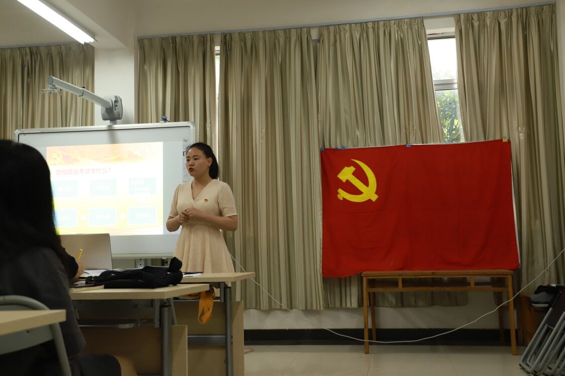 理工学院2016级优秀学生党员蒋倩则从微观的角度,为入党积极分子梳理了党校考试的题型、答题要点以及知识要点,并为入党积极分子讲解了党校考试的重点和难点。同时,她为入党积极分子提出了三点建议:一是提高政治理论修养,坚定共产主义信念;二是努力学习,不断提高自身素质;三是养成吃苦耐劳、知荣辱讲道德的美好品德。