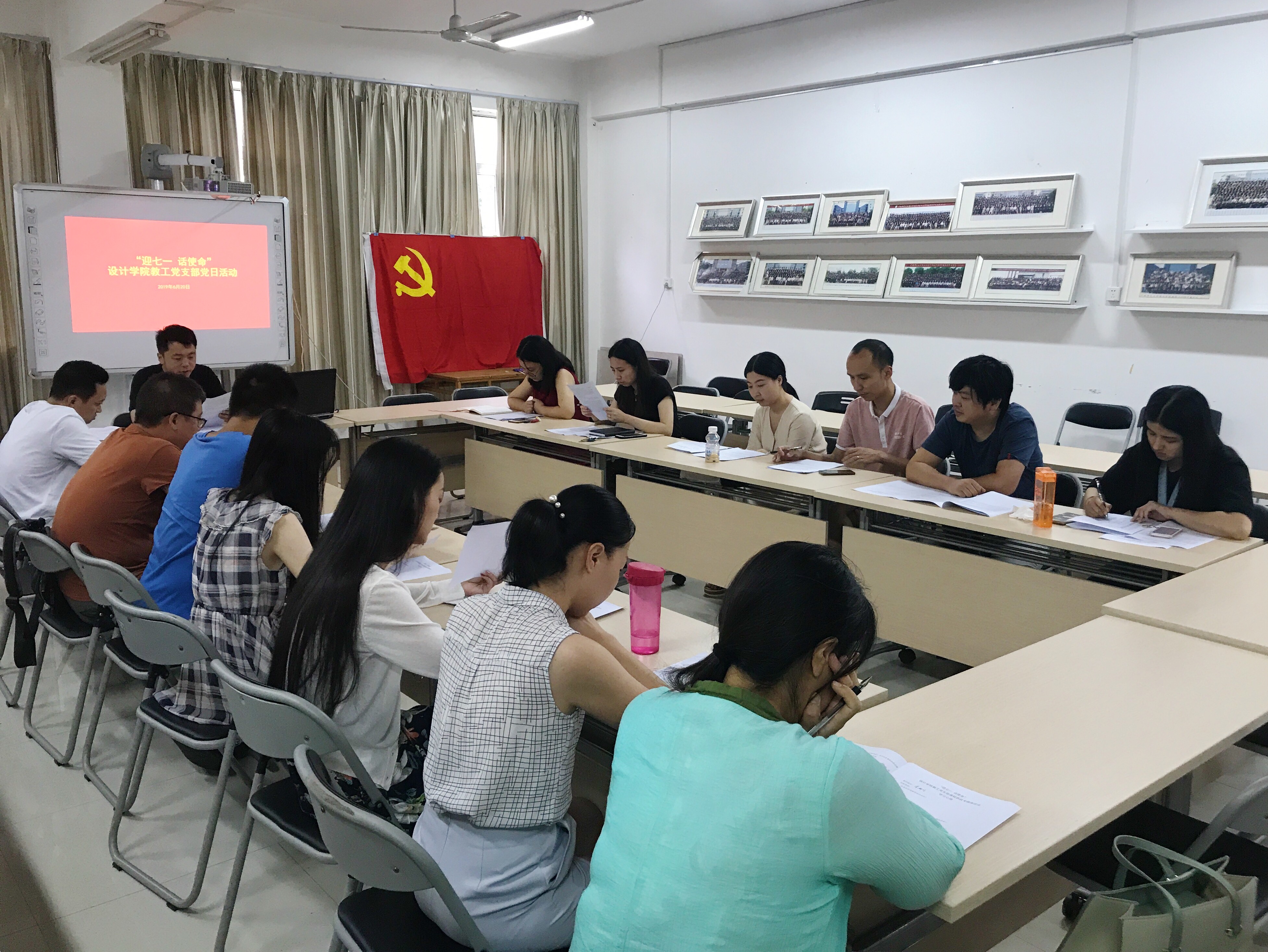 近日,设计学院教工党支部在嘉善楼213会议室组织党员教师开展以“迎七一,话使命”为主题的党日活动,围绕课程思政工作开展专题学习和讨论,以此向“建党98周年”献礼。