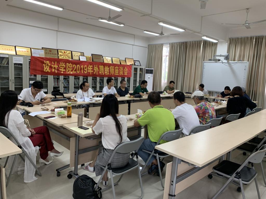 9月10日上午,设计学院组织全体外聘教师在嘉善楼213会议室召开座谈会。设计学院领导班子出席会议,向全体外聘教师致以节日问候。