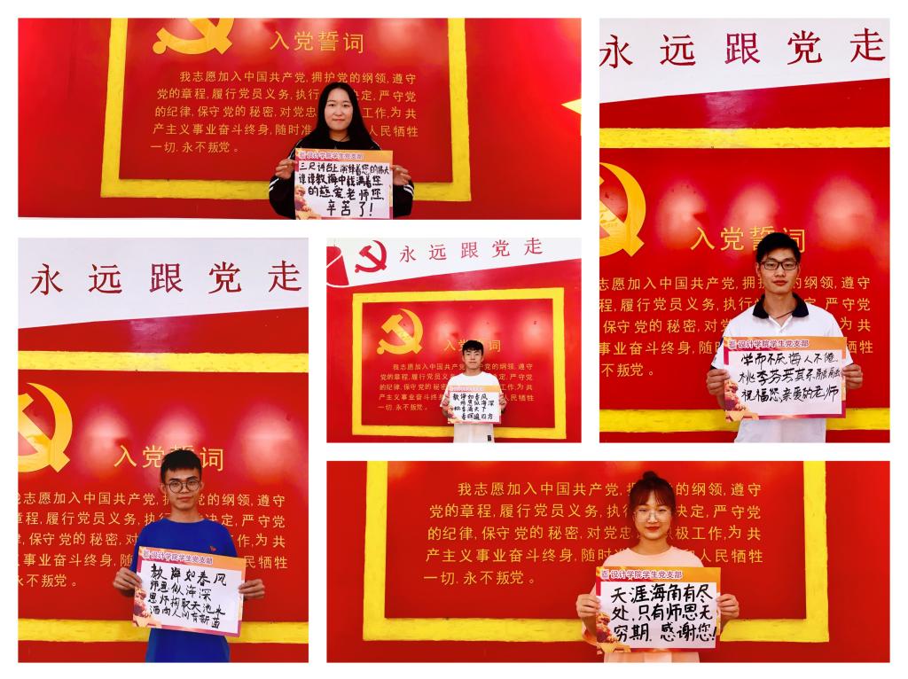9月24日—9月26日,党支部发起了“尊师重教,感念恩师——老师的教诲促我成长”线上分享活动。支部党员们积极参与其中,分别在QQ空间、微信朋友圈、微博等网络平台,分享“我与老师难忘的故事”。党员李黄亚鸿说到,感谢迄今为止遇到过的每一位老师,我会带着感恩的心把爱的力量传递给其他人。党员张庆龄提到,曾以为老师是学生时代的“阴影”,后来才知道,老师是记忆里最柔软的暖光。我会珍惜老师们对我的谆谆教导,不忘初心,砥砺前行!