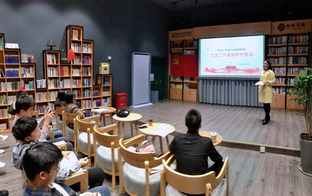 党课环节,由支部书记陈丹萍主讲。她结合习近平总书记在各种会议、工作中的讲话内容,从文艺的重要性、文艺工作面临的问题、如何推动社会主义文艺发展等方面为党员讲授专题党课《文艺工作者的时代担当》。她引导党员明确自己的时代责任,坚持以人民为中心的创作导向,成为时代风气的先觉者、先行者和先倡者,成为德艺双馨的文艺工作者。她希望大家能发挥好党员先锋模范作用,成为有信仰、有情怀、有担当的新时代文艺工作者。