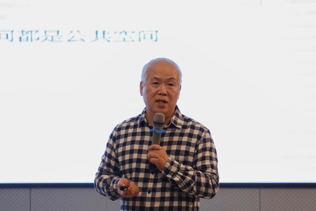 讲座中,徐放教授和陶雄军教授分别以城市公共空间品质提升的途径和文脉设计在空间设计如何表达等方面进行讲述和引导,提出了各自在实际项目操作中创意的开始、设计的过程、解决问题的步骤等丰富详实的学术理论和设计方法。徐放教授认为,一个好的设计,从初始状态到最终状态并不是一个简单的过程,依次要从问题研究、定义、再研究、概念成型、概念选择、导入、学习并进行反复修正入手,要不断的寻找和发现过程之中的问题,制定设计策略;在设计之中,可以从目标、发展需求、现代化技术和不同体验和经历着手开始设计、反复论证,最后得出设计的结果。同时,在设计的过程中需要不断反思、创新。他还利用一些生活的小例子,深入浅出地介绍什么是问题,如何训练善于发现问题的能力。最后,徐教授归纳总结了作为设计师,应该具备的记忆能力、理解能力、应用能力、分析能力和评价能力,将这些所有能力加起来就是创造能力。