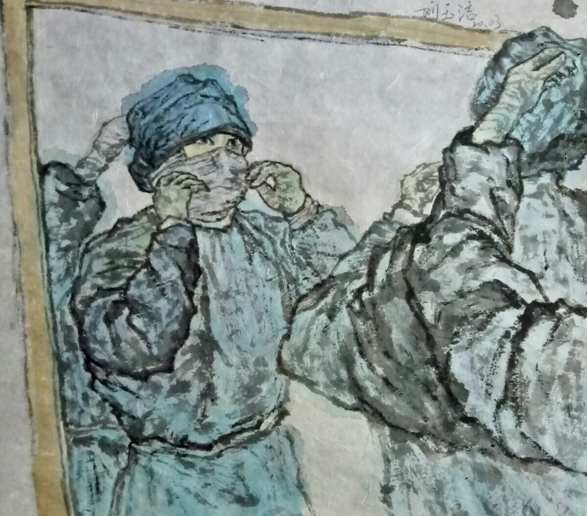 设计学院的学子们以作品为载体表达了他们在疫情中的所感所悟。2016级景观设计专业学生、党员蔡雅婷以设计作品《武汉加油》表达了她对医护人员的敬畏之情,以此致敬医护人员,希望他们平安归来。2016级景观设计专业学生、党员秦淞群的速写作品《抗疫回忆录》展示了抗疫工作小场景,对抗疫的医护人员和坚守在前线工作岗位的先锋进行生动形象的刻画,表达了众志成城,度过难关的美好心愿。2016级室内专业学生、党员刘玉洁绘制了国画“整装待发”,并深情地写到“你们的脸,我们看不到,唯一能看到的是你们那双坚定的眼眸,在这危难时刻,你们挺身而出,救下太多太多的人,你们是人民的英雄,人民的卫士!你们的努力,全国人民的配合,让我们就要看到胜利的曙光了!加油武汉!加油中国!”。一幅幅优秀的作品,一份份真挚的感情,一个个美好的祝愿…展现了当代青年的对祖国的深情,对英雄的敬仰,对责任的理解。