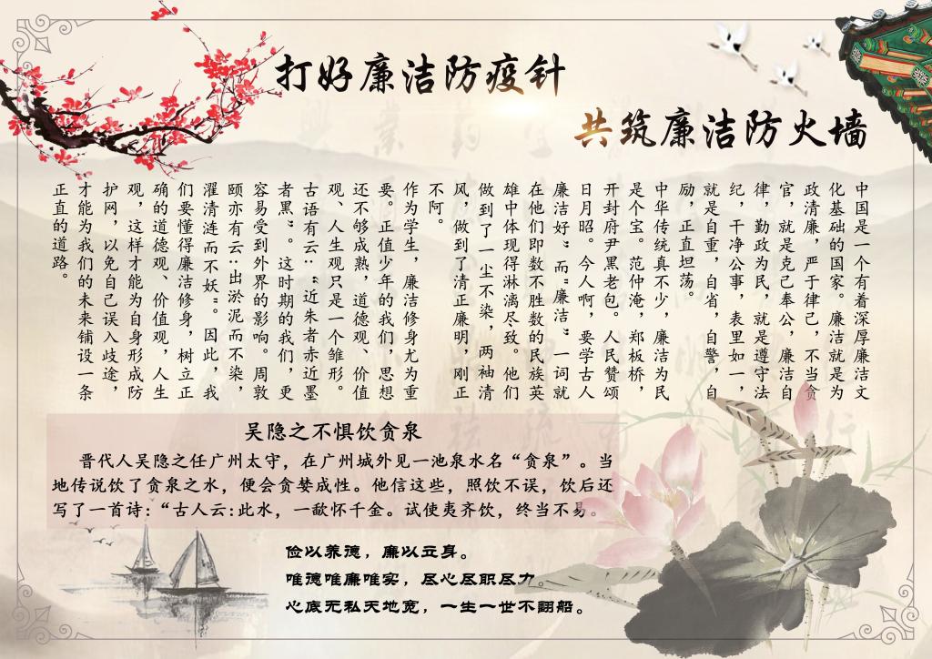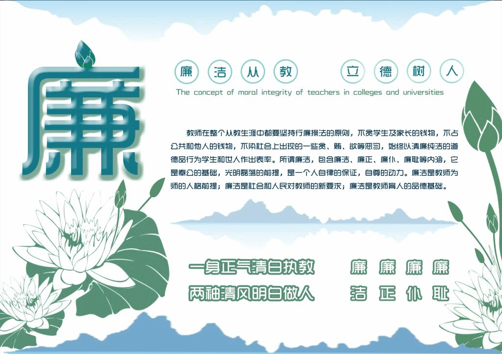 近日,设计学院党总支开展“5.10”思廉日主题教育活动,组织全体党员以“打好廉洁防疫针,共筑廉洁防火墙”为主题制作廉洁电子小报并利用网络平台进行展示,以此强化党员干部的廉洁意识,促进形成倡廉、树廉、守廉的良好校园氛围。