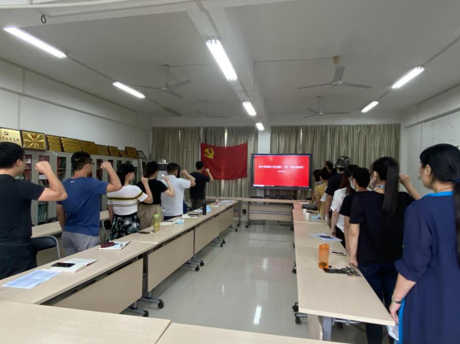 7月9日,设计学院教工党支部在嘉善楼213会议室开展“不忘初心使命,庆祝建党99周年”主题党日活动。