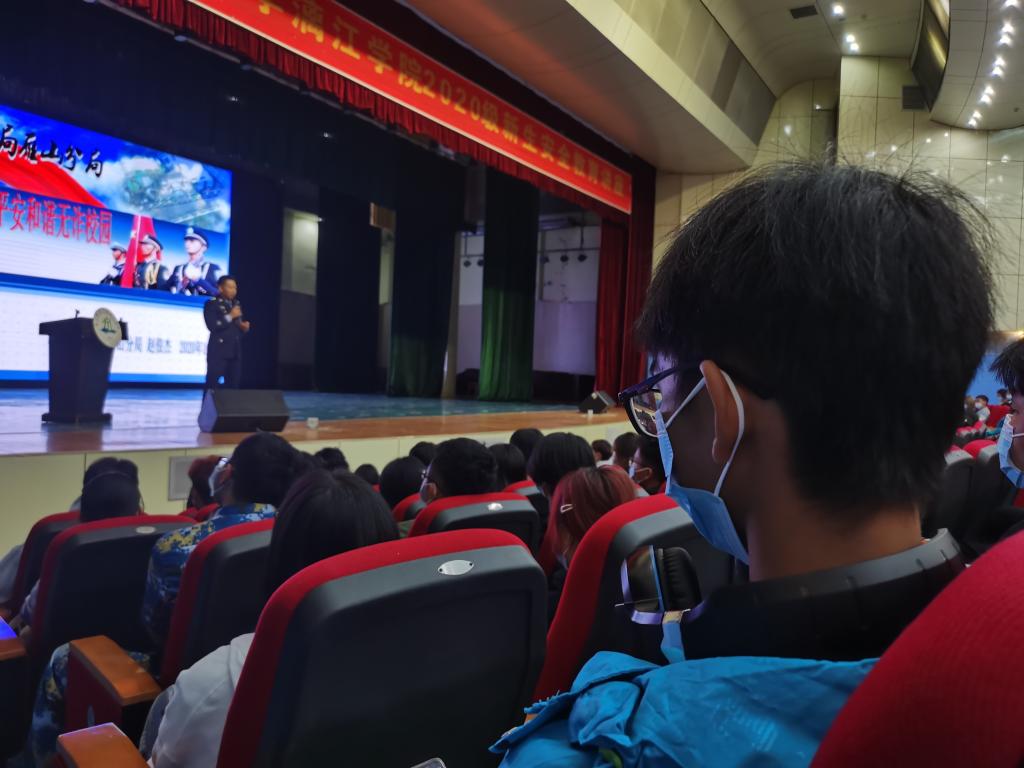 赵俍杰警官分别向新生们讲解了人身安全防火、消防安全以及防盗防骗相关安全知识。赵俍杰警官强调,安全是学校安全工作的重中之重,广大同学要从身边做起、从自己做起、从细节做起,防患于未然。