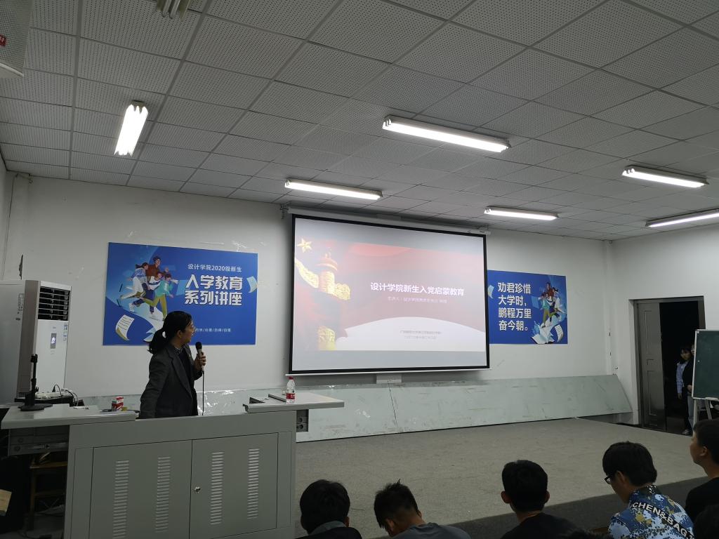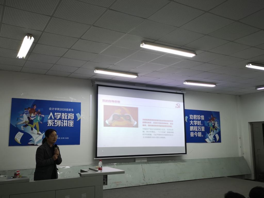10月23日晚7点,设计学院在嘉善楼132教室举行入党启蒙教育及民族宗教政策宣传专题讲座。本次讲座由设计学院党总支书记张丽担任主讲人, 2020级全体新生参加了本次讲座。