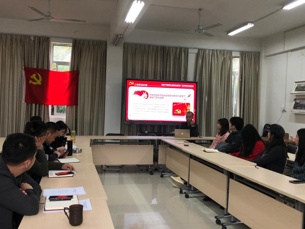 10月29日上午,设计学院教工党支部在嘉善楼213会议室举行“凝聚发展动力”主题党日活动,活动由教工党支部书记蒙晓伟老师主持。