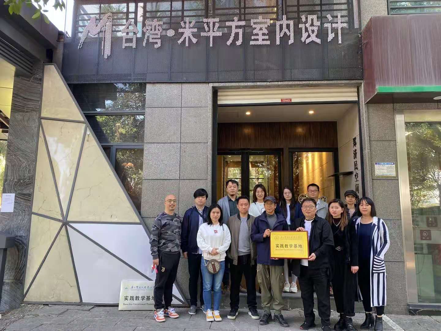 为进一步落实学校应用型人才培养计划,推进区级一流专业(环境设计)建设,加强校外见习、实习、就业基地建设,11月13日,设计学院院长曾子杰、副院长贺雷及环境设计教研室教师代表一行11人代表我校前往桂林米平方装饰设计工程有限公司进行实践教学基地挂牌仪式。