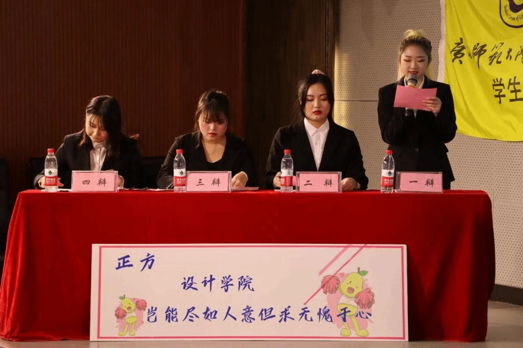 本场辩论赛由正方设计学院辩论队与反方经济与管理学院辩论队就“岂能尽如人意但求无愧于心”还是“岂能无愧于心但求尽如人意”的辩题展开论战。双方辩手集逻辑、明辨、前瞻性于一体争锋相对,步步紧逼将辩论队推向高潮,最后赢得台下同学的阵阵掌声。经过激烈的对战,设计学院辩论队与经济与管理学院辩论队,以四比四的成绩,平票,取得了冠军。