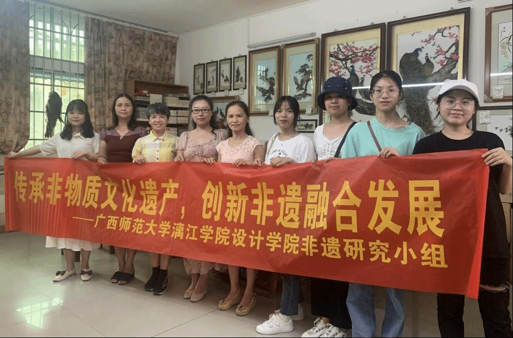 2018年,玉林羽毛画被列为玉林市第一批、广西壮族自治区第六批非物质文化遗产项目。近日,由广西师范大学漓江学院设计学院学子组成的“传承非物质文化遗产,创新非遗融合发展”调研小组在指导教师严乐老师的带领下前往玉林市进行实践活动。
