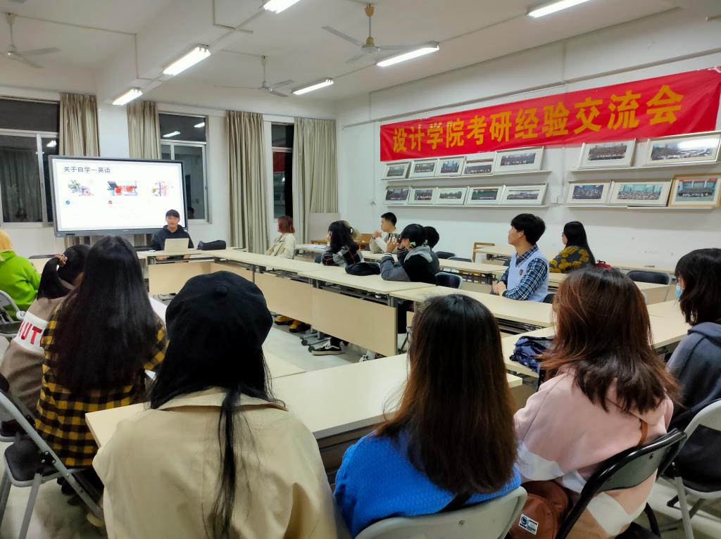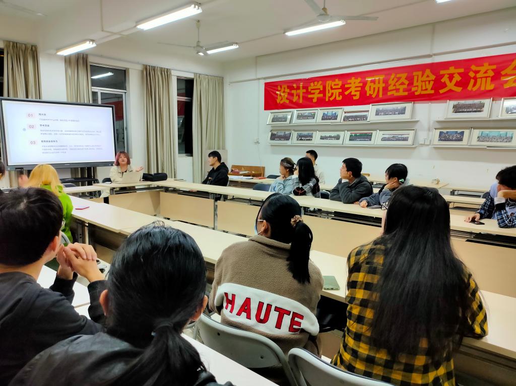 为进一步加强同学们对研究生入学考试的认识,提高2019级学生考研热情,增强学生考研信心,明确考研目标和方向,10月31日下午,设计学院在嘉善楼213会议室开展了考研经验交流会。活动邀请了广西师范大学设计学院在读研究生余如叶、张昕进行交流分享。设计学院2019级辅导员以及全体志愿考研的学生参加了交流会。