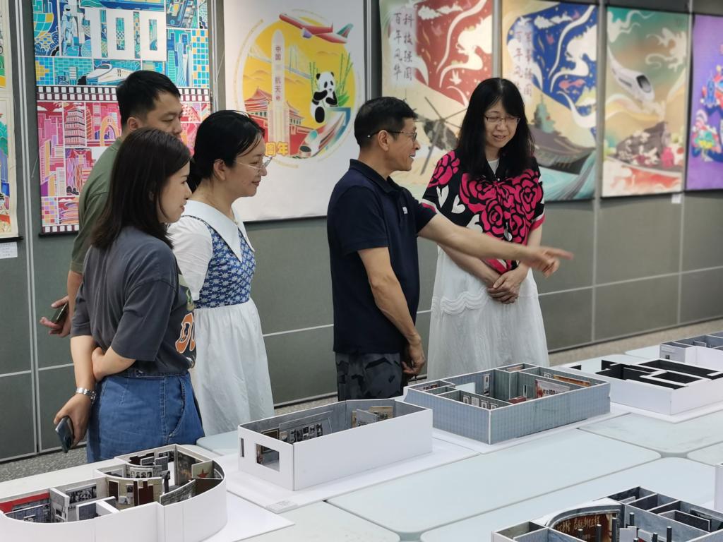 《模型设计》课程作品是本次展览的亮点。2018级景观设计专业的同学在卢春辰老师的指导下,将课程所学的模型设计知识综合运用到红色主题展览馆的设计中,并制作了精美的模型作品。从素材搜集到设计图稿,从零件制作到组合拼装,学生们在实践中加深了对知识的理解,也深化了对党的历史的了解和认识,这是课程思政的一次成功尝试。