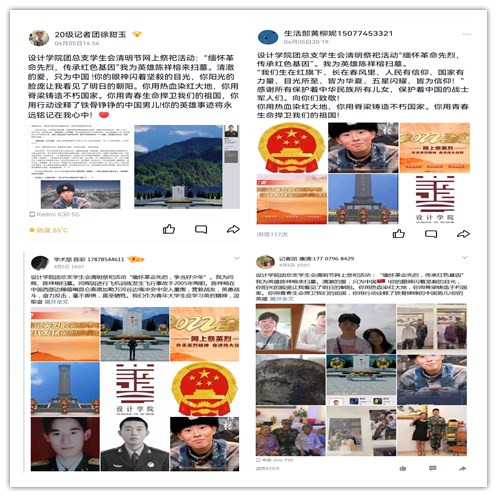 “梨花风起正清明,云端祭祀更文明”。设计学院团总支学生会4月5日清明节当天开展了“缅怀革命先烈,传承红色基因”清明节线上祭扫活动,广大团员青年积极参与其中,纷纷立志向先烈学习,将爱国之情、报国之志化为实际行动,继承英烈遗志,弘扬民族精神,争做担起民族复兴大任的时代青年。