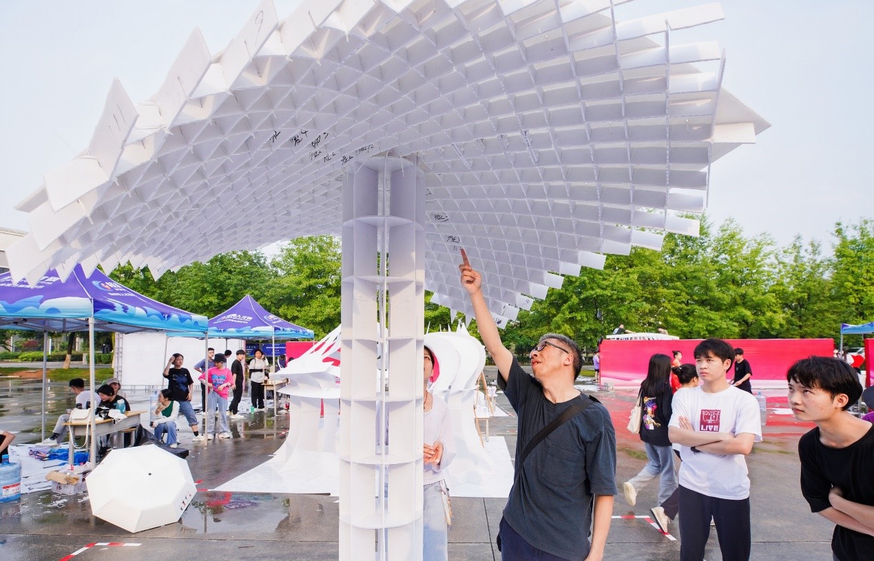 4月23日,我校受邀参加南宁理工学院以“南理.驻.恋”为主题的校庆建造节活动。在设计学院环境设计专业卢春辰老师带领下,作品《结》荣获二等奖。