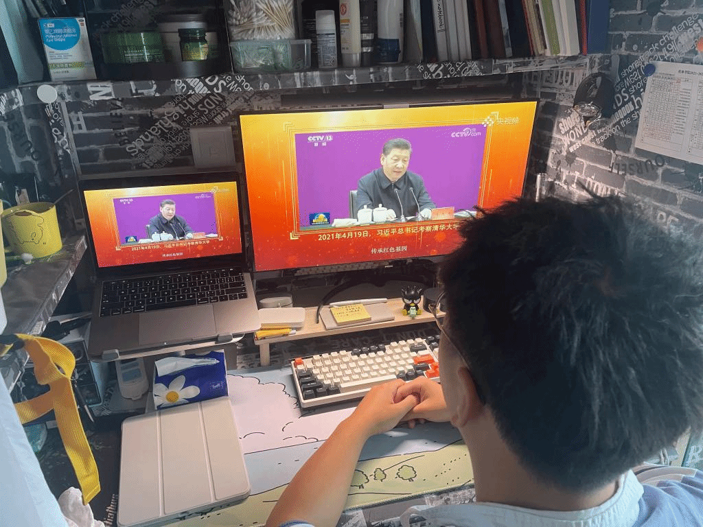 微党课上,由北京大学、中国人民大学、复旦大学、湖南大学4所高校党委书记和教师代表,围绕学习贯彻习近平总书记考察学校重要讲话或给学校师生重要回信精神,讲述牢记习近平总书记殷殷嘱托、坚持马克思主义指导地位、坚持社会主义办学方向、传承光荣传统和红色基因等情况。