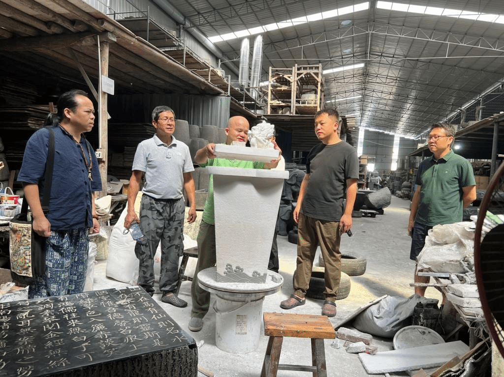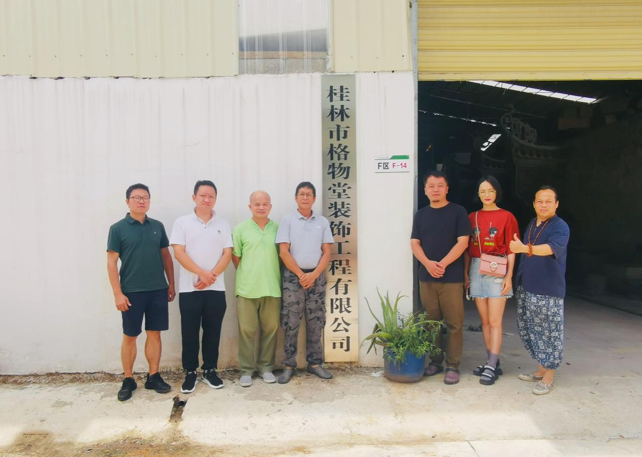 在对桂林市格物堂装饰工程有限公司走访中,了解到该公司围绕特色文化创意产业,以相关衍生产品为支撑,先后布局特色集成式建筑、家居装饰品,旅游工艺品等项目。公司秉承“承古人之创造,现质感之生活”的理念,已形成“自有设计团队+生产制作+线上线下渠道销售”的创意产业链。公司负责人黄珂带领我们参观了工厂生产制作流程和相关产品实物,详细介绍了该公司在区内外完成的设计项目。交流中,校企双方就工艺美术专业产教融合、企业的用人需求等方面进行了深入讨论,期望双方今后加强合作,为今后校企合作项目的开展奠定良好基础。