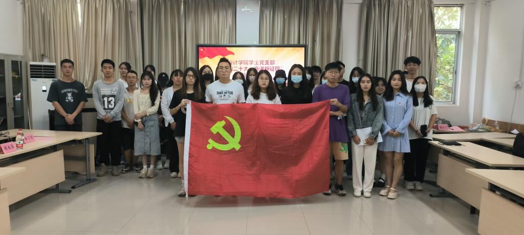 为贯彻学习党的二十大精神,10月26日中午,设计学院学生党支部在设计学院嘉善楼213教室开展“喜迎二十大,奋进新征程”主题党日活动,设计学院各年级辅导员、全体在校党员、预备党员以及各年级党建信息员参加此次活动。