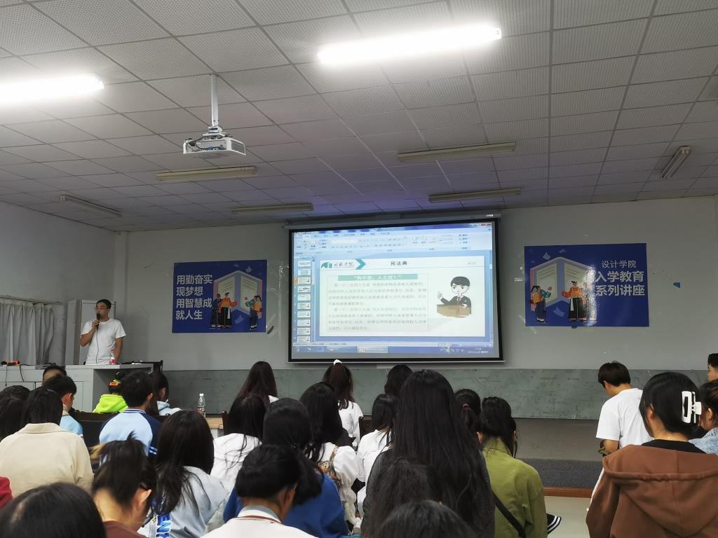 11月6日晚,设计学院在嘉善楼132教室举办2022级法律知识宣传讲座,此次讲座由商贸与法律学院的王晨老师主讲,2022级全体新生参会。