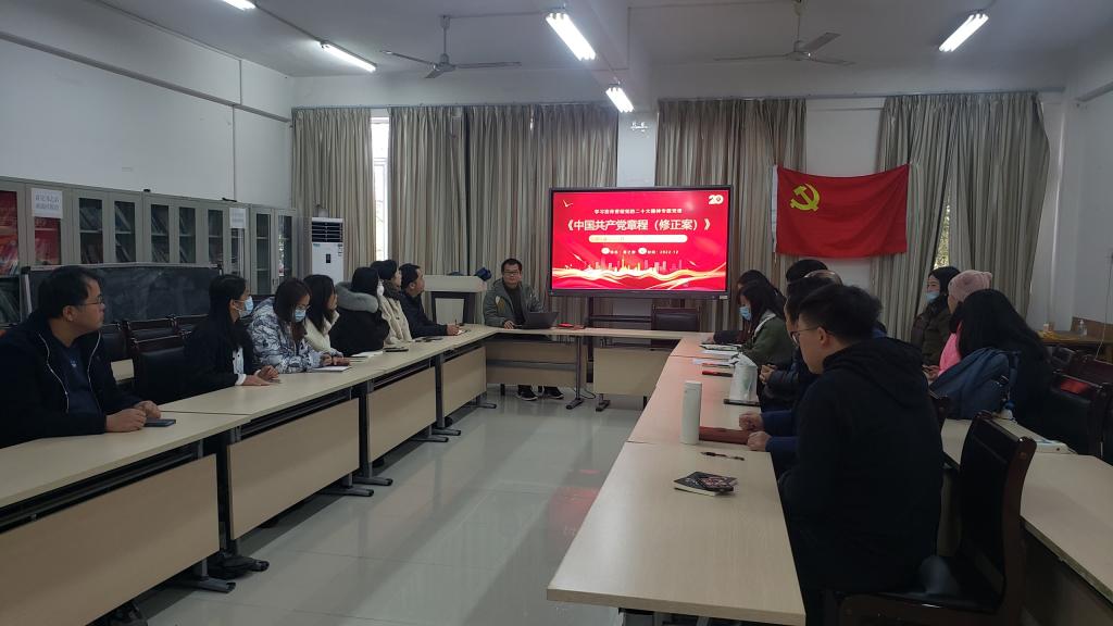 12月6日下午,设计学院教工党支部在嘉善楼艺术工厂213会议室举行“强基固本筑堡垒,凝心聚力促发展”主题党日活动,开展学习宣传贯彻党的二十大精神专题党课——《学习解读二十大对党章作出的修正》,党课由教工党支部书记葛之刚主讲。