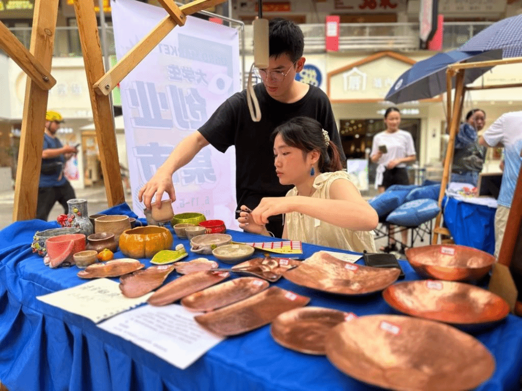 6月17日至18日,城市设计学院工艺美术专业2021级、2020级学生在桂林市高新万达广场开展创业市集活动。此次活动,汇集了共计六百余件创意作品,共有十余位“摊主”参与。