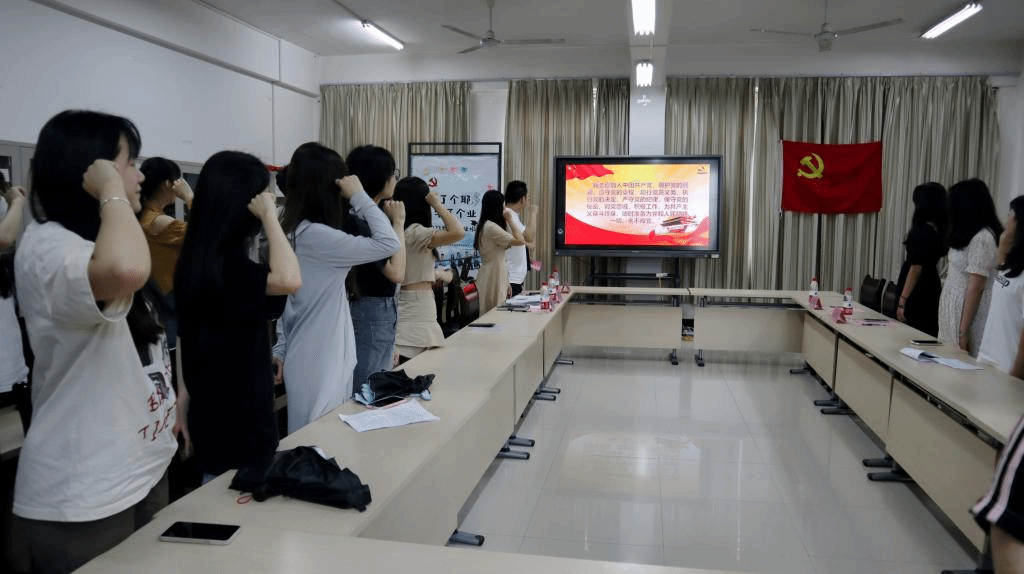 最后,全体毕业生党员共同签订承诺书,重温入党誓词,再次喊出庄重的誓言,强烈感受到身为党员的使命和荣耀。同时,低年级学生党员给毕业生党员送上温暖的毕业寄语,毕业生党员纷纷表示在今后的工作中要以更严格的标准严格要求自己,立足本岗,勤奋工作,永葆共产党员的先进性,坚定理想信念,为党的建设添砖加瓦。