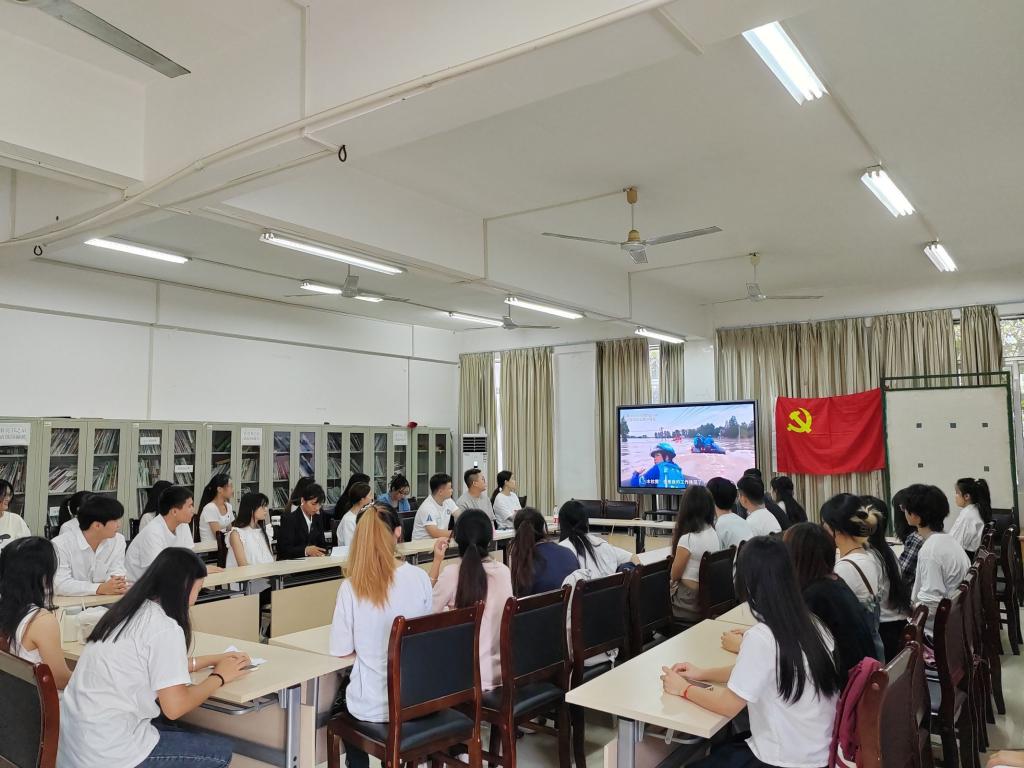 2020级党员钟林娜以党员领学的形式,讲述黄文秀同志的事迹。黄文秀同志研究生毕业后毅然回到百色革命区,在脱贫第一线倾情投入、奉献自我。她不顾危险,告别病中父亲,连夜冒雨奔向受灾群众,用生命践行了一个共产党员对信仰的无比真诚。