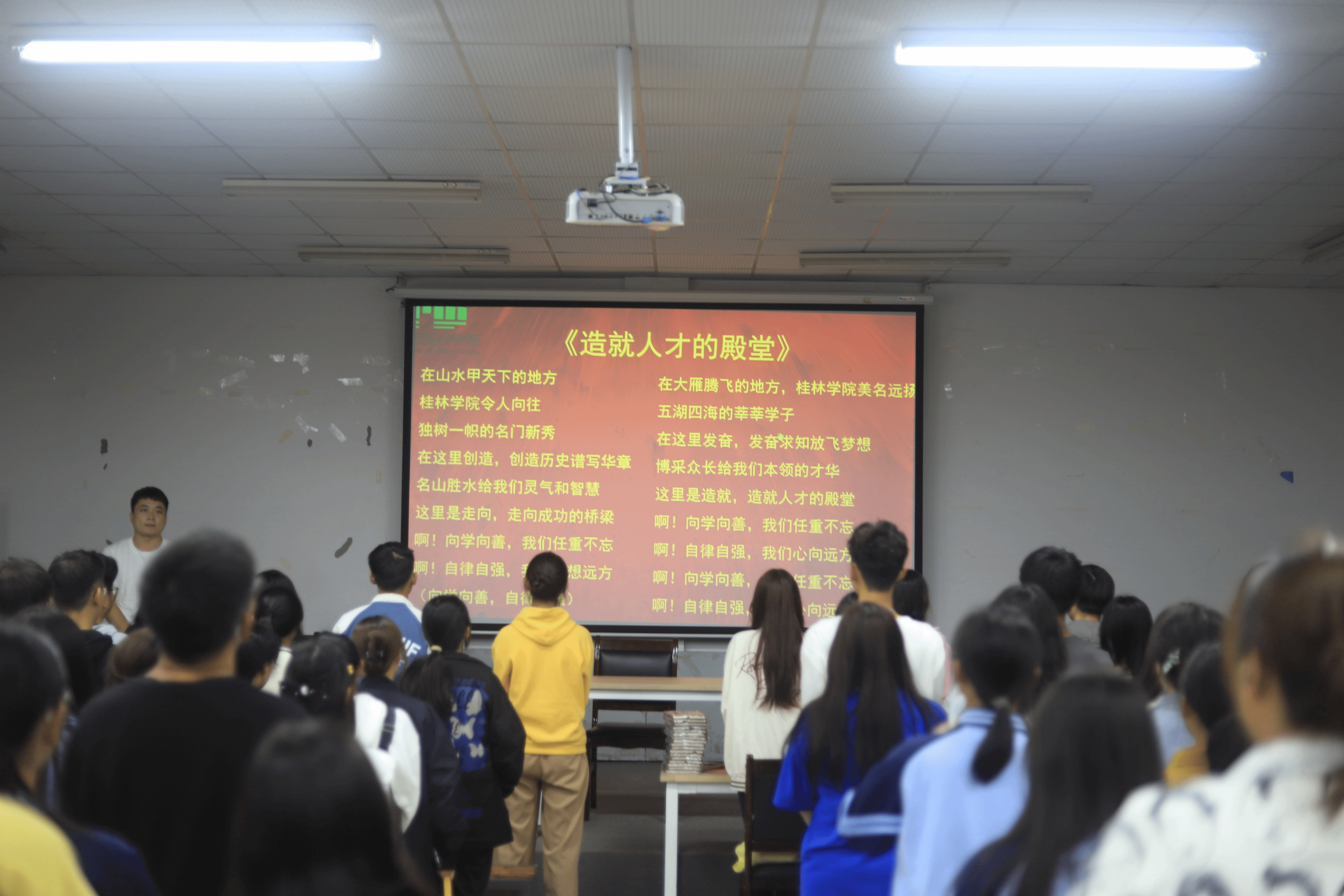 活动分三个部分展开,首先由新生辅导员诸葛恒、韩博领学《桂林学院章程》,为同学们讲解章程中的核心内容,包括学校的发展历程、办学理念、学生在校期间享有的权利与需要履行的义务以及教育教学管理等内容。在学习过程中,同学们积极思考,认真记录,对章程中的重点内容进行了深入的探讨和理解。同时,辅导员还鼓励同学们在日常生活中积极践行章程精神,发挥自身作为大学生的责任与担当。接着,由班助组织同学们抄写桂林学院赋,通过一笔一划抄桂林学院赋,一点一滴增桂林学院情,同时也进一步学习和体会桂林学院的文化和教育教学理念。最后,活动在齐唱桂林学院校歌中结束。