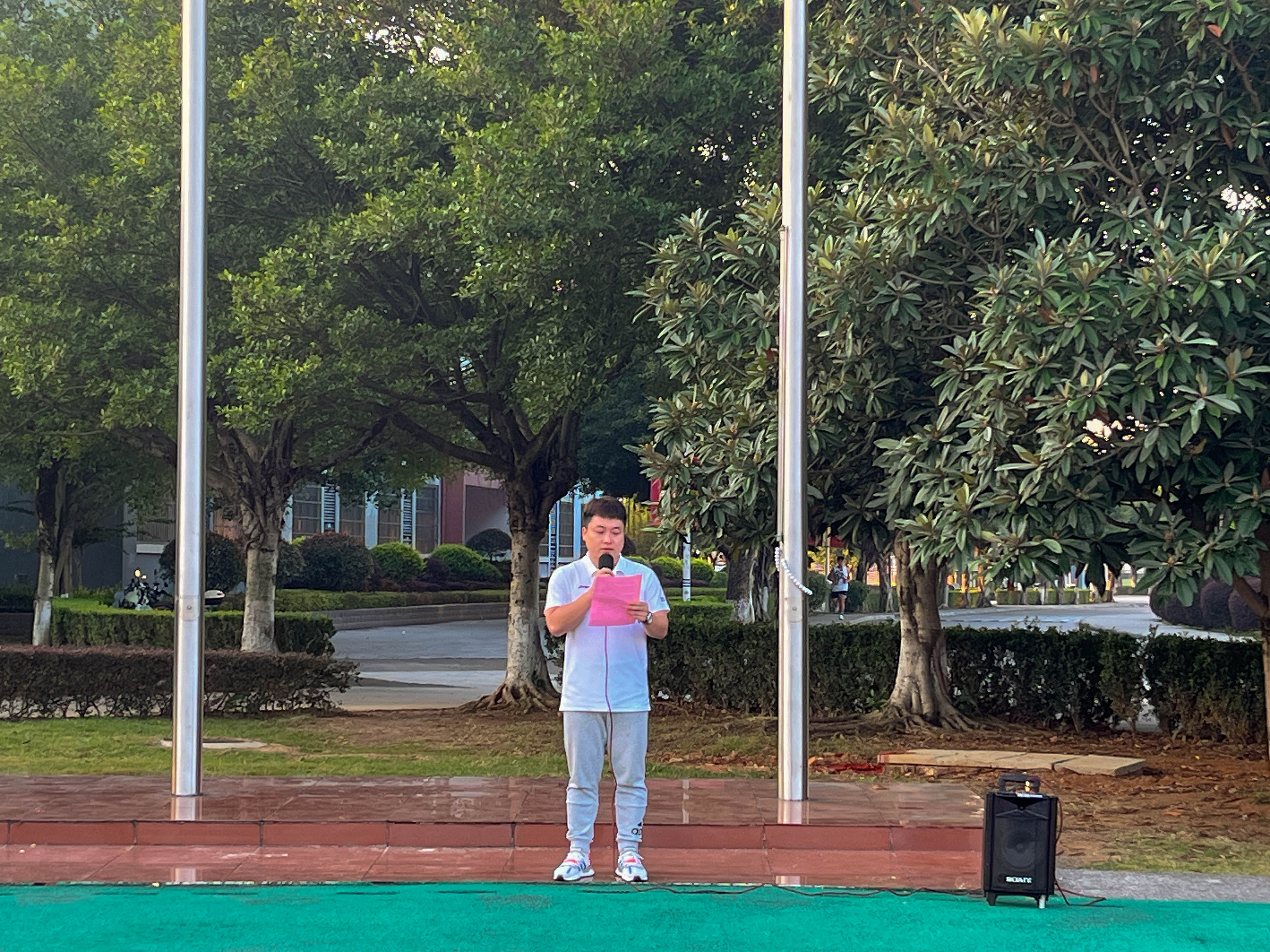 接着2023级辅导员韩博进行国旗下讲话,韩博老师以“请党放心,强国有我”为主题,勉励大家肩负起历史的重任,以党的精神为指导,为实现中华民族伟大复兴的中国梦而努力奋斗。作为新时代青年人,要有理想有担当,开拓创新能力,为全面建设社会主义现代化国家的砥砺奋斗中书写精彩人生。