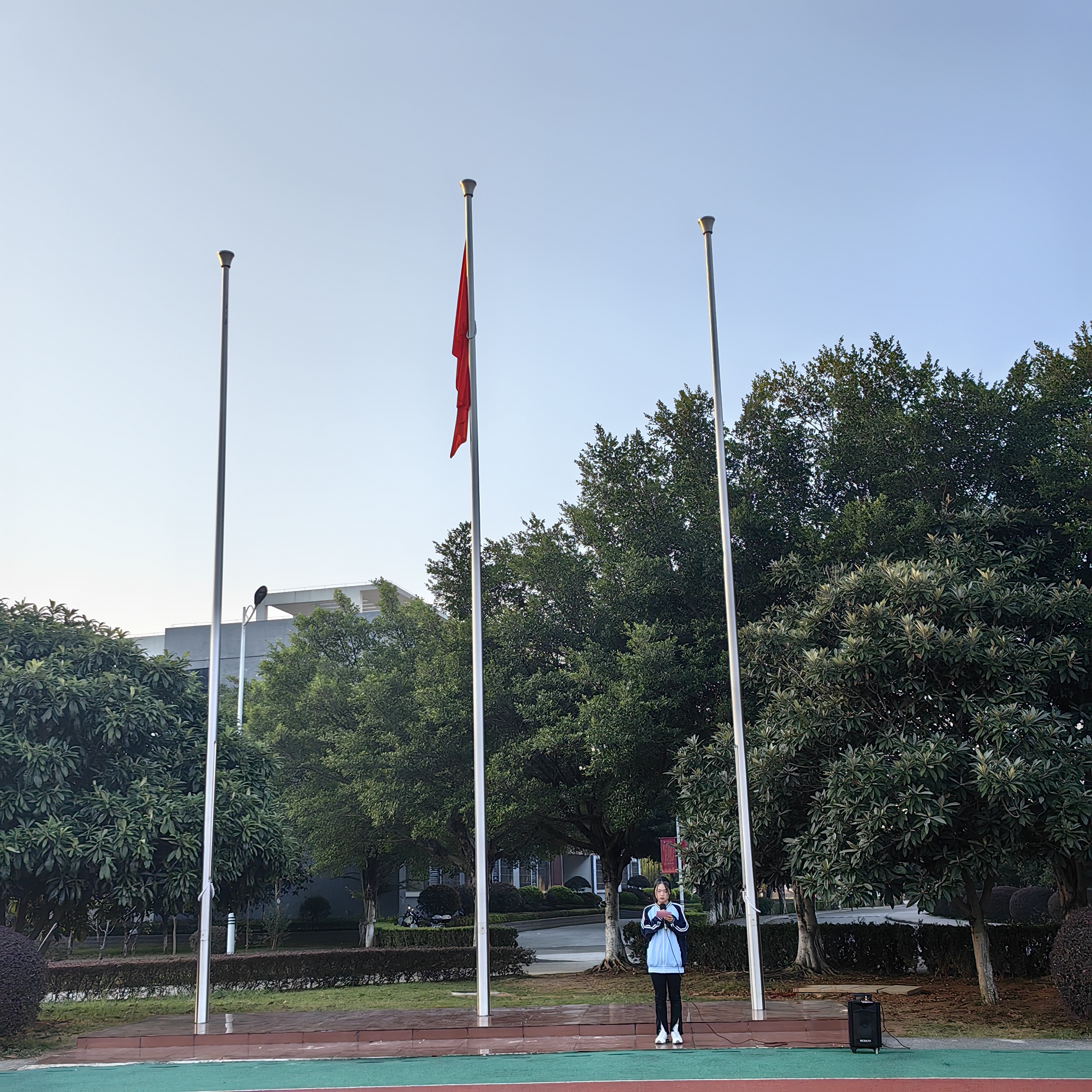 6点55分,国旗班着装整齐,踏着铿锵有力的步伐,护着鲜艳的五星红旗入场举行升旗仪式。在全体成员的注目礼下,伴随着激昂雄壮的国歌声,全体师生唱国歌、行注目礼,鲜艳的五星红旗迎风飘扬,冉冉升起在桂林学院的上空。随后,团总支学生会执行主席吴诗芸作为学生代表做国旗下的讲话。她号召新时代青年大学生要牢记嘱托,常怀志气、骨气、底气,接力奋斗继续前行,勇做走在时代前列的奋进者,要树立自信、挺直腰杆,发扬历经磨难而信念弥坚、饱经沧桑而斗志更旺的骨气,在困难面前百折不挠、愈挫愈勇,从容应对惊涛骇浪。