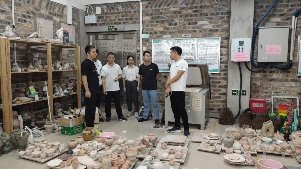 城市设计学院主持工作副院长贺雷、副院长葛之刚以及教研室相关教师带领来访团一行参观了学院工艺美术教研室的陶艺工作室、雕塑工作室、扎染工作室及锻铜工作室,同时在工艺美术教研室办公室暨展示空间进行了座谈交流。