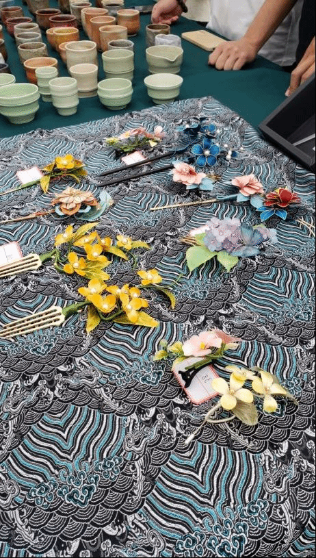 此次市集,同学们带来了日常学习实践制作的非遗缠花工艺小饰品以及陶艺作品,包括各种花器和茶具。精美的工艺美术作品受到了广大师生的关注及喜爱。在此次创意市集实践活动中,营业额达1000多元,这充分展现了工艺美术专业学生扎实的专业功底和丰富的创意理念。