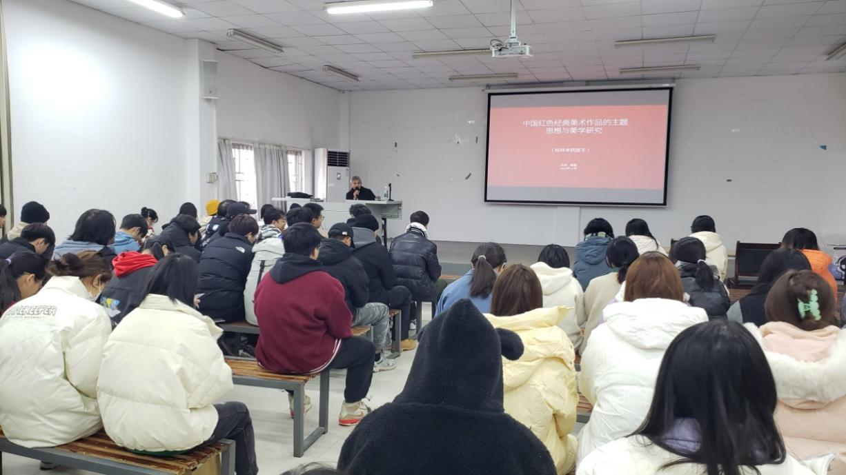 11月14日上午,城市设计学院邀请桂林画院公教部主任、中国美术家协会会员、国家二级美术师、广西雕塑艺委会副主任、桂林雕塑艺委会主任、国家艺术基金创作评委黄熙开展“中国红色经典美术作品的主题思想与美学研究”的讲座。讲座在嘉善楼132教室开展,学院工艺美术专业全体学生参加讲座学习。