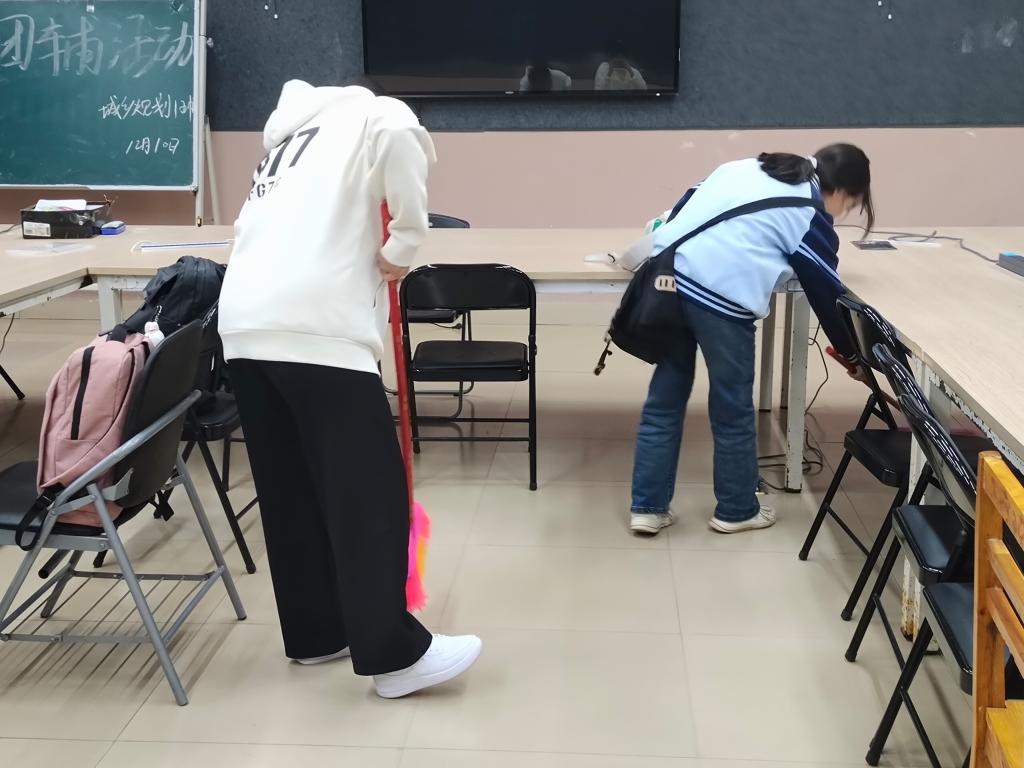 活动当天,同学们在老师的指导下,首先对工作室进行了全面地检查,了解工作室的布局和物品摆放情况。活动过程中,同学们热情洋溢地进行清扫活动,展现了城市设计学院学生阳光向上,精神饱满的良好状态。同学们合理分工,各尽其责,针对墙面污点、卫生死角、桌椅摆放、地面灰尘等问题进行了不同方式的处理。他们仔细清扫,不遗漏任何边缘角落,把桌椅归置整齐,并将清理后的垃圾集中放置,在同学们的共同努力下,工作室很快变得整洁有序。青马班学生负责人李立荣说到,在清扫整理的过程中,我们不仅提高了自己的劳动技能,还培养了良好的劳动习惯。我们互相帮助,共同协作,展现了团队协作的重要性。