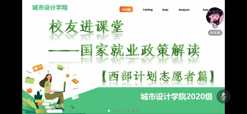 12月19日晚,城市设计学院通过腾讯会议线上举办“校友进课堂-国家就业政策解读”之西部计划志愿者专场讲座。本次邀请城市设计学院2019级校友尧文苑作为主讲嘉宾,2024届全体毕业生参加。