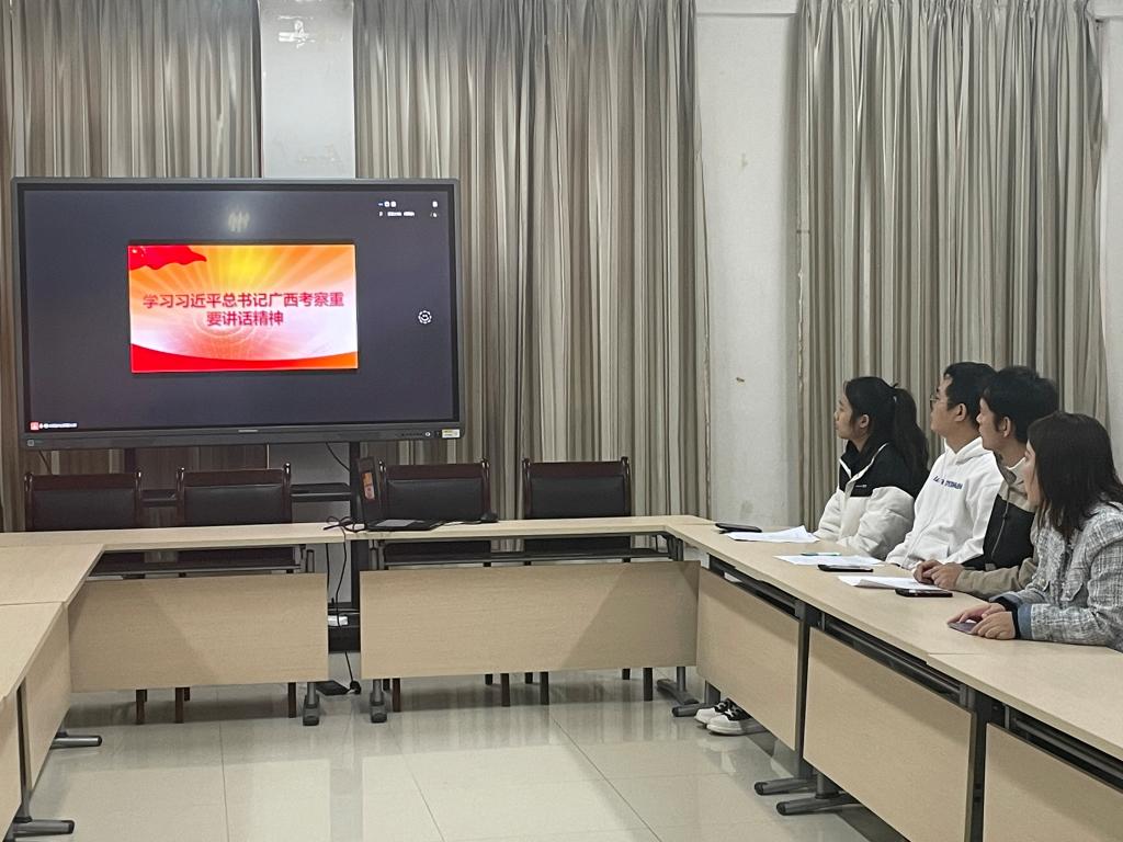 首先,全体党员进行“第一议题”学习,观看2023年12月14日至15日“习近平总书记考察广西并作重要讲话”的专题视频。在集体学习后,辅导员诸葛恒提出,广大学生党员要学习好、宣传好、贯彻好习近平总书记的重要讲话精神,牢记嘱托,努力学习,担当实干,为建设新时代壮美广西奉献自己的一份力量。