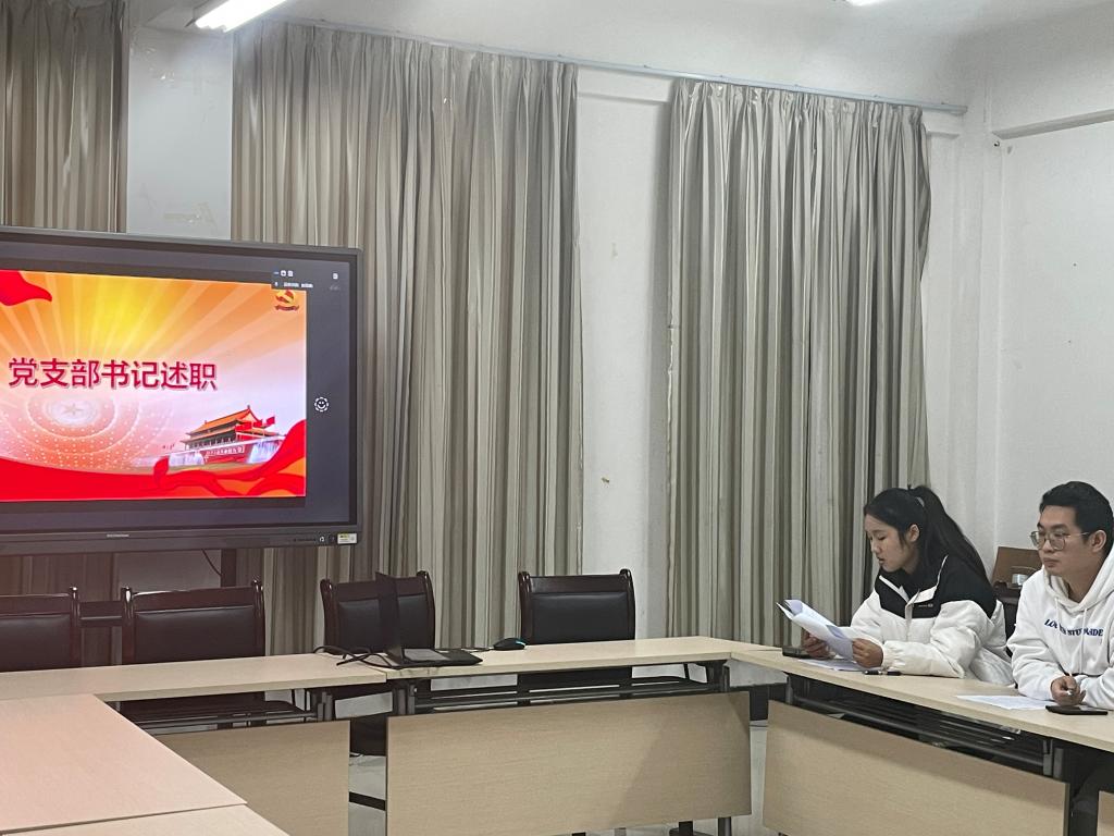 接着,学生党支部书记易彦兵进行党支部2023年度的工作述职,她立足工作实际,从“学思践悟中夯实思想根基,认真履职尽职中推进任务落实,严格自警自律中锤炼扎实作风”三个方面对过去一年的工作进行回顾和总结,在肯定成绩的同时,她希望在2024年的工作中能深化党建与业务的融合,努力打造特色党支部,创建党建品牌。
